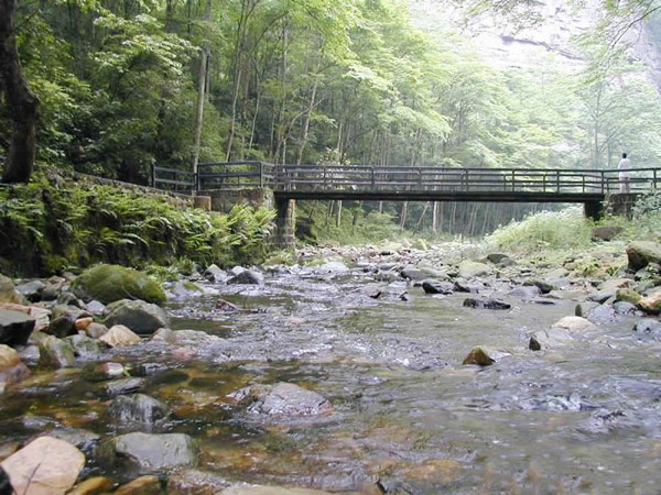 Actually it's different with my imagination. What I expected was “hiking”, which means the road along a stream is bumpy like mountain road. When I came to there, I found that the road is built very well, not too wide but enough for pedestrians. There’s also something interesting on road to please tourists such as short piles, wood suspension bridge and little monkeys. Certainly the views on both sides are amazing.