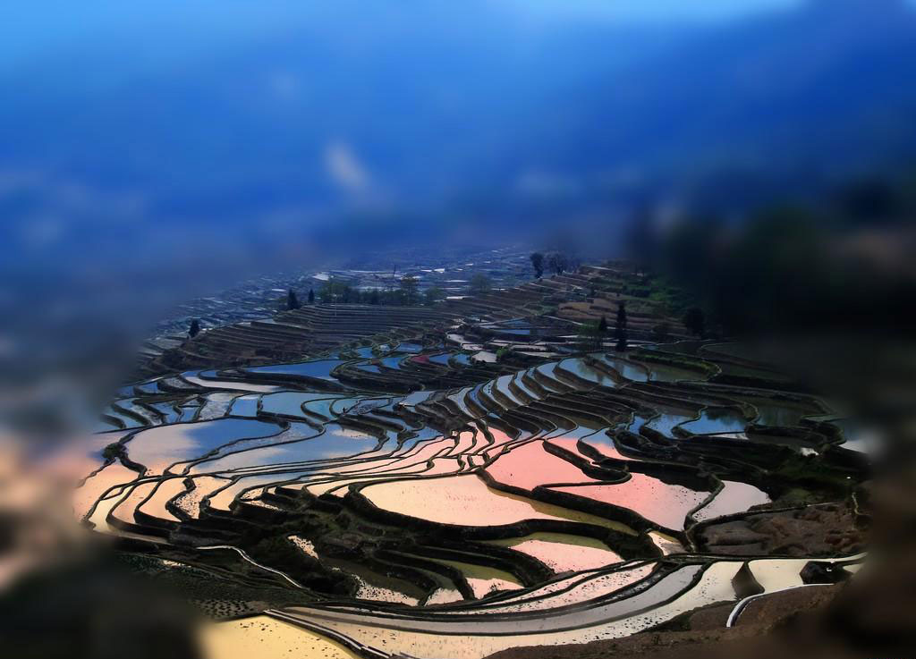Yuanyang locates in Honghe Prefecture, southeastern Yunnan province, where the major inhabitants are Hani people who live with several other minorities such as the Yi and Miao. The terraced fields have been carved out of dense forest of Ailao Mountain by Hani people for at least the past 1300 years. UNESCO said it “an exceptional way a specific interaction with the environment mediated by integrated farming and water management systems". It is a witness of extraordinary harmony between man and nature. China submitted the Honghe Hani Terraced Fields for World Heritage Site status in 1998, and finally got her wish.
