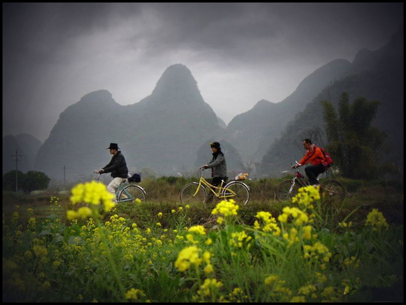 Yangshuo is not all about Karst landscape and Li River Cruise, there are also cozy country life and blooming rape flowers in Spring. The farmlands of rapeseed flowers are not as big as those in Luoping or Wuyuan, but still breathtaking, as they perfectly melt into the idyllic countryside, picturesque karst peaks, flowing rivers and streams. You can rent a bicycle for a delightful Yangshuo countryside tour. Early March is the best time to see rape flowers in Yangshuo, with average temperature being about 15 °C (57 °F). Just bring with an umbrella In case of some rainy days.