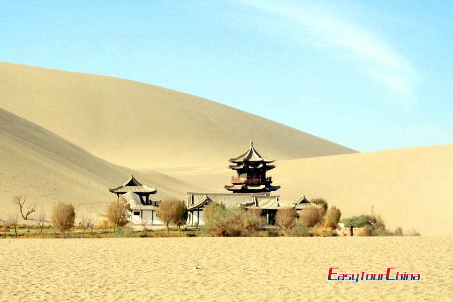 On the edge of the Tengger Desert, there are two marvelous things about Sing Sand Dunes: if people slide down from the top, the sand under their feet will purr, just like singing; people climb the sand dunes left footprints during the day, they will not be traced on the next day. Crescent spring is in the Singing Sand Dunes, the water is as blue as emerald, setting on the golden dunes. Through the ages, it is famous for its wonderful landscape of "coexistence of dunes and springs ", Known as "one of the best scenery of frontier".