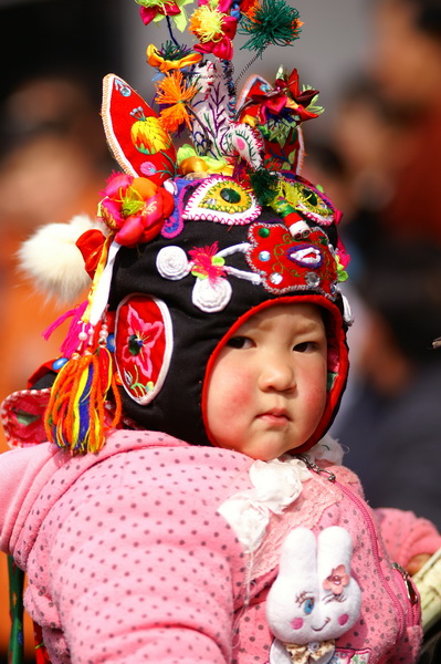 Tiger-head cap is for kids, both boys and girls! In Ancient China, a child dressed in tiger-head cap, with tiger-head shoes to ward off evil. Today, there are also tiger-face hat, dog-head hat, lion-head hat, little pig-head hat, etc.