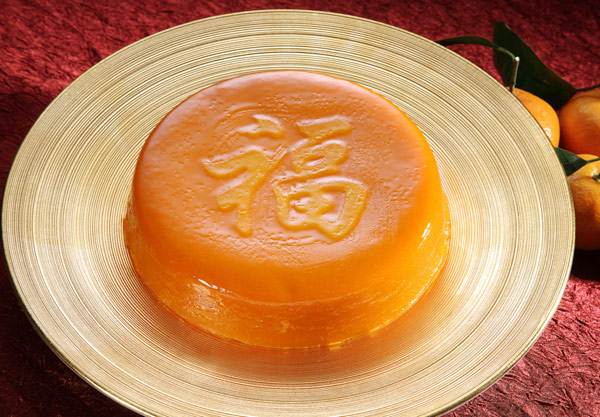 The most popular Chinese New Year food, glutinous rice cake or Niangao (年糕 Niángāo) literally means "Chinese new year cake" with a homophonous meaning of "higher year". It is a kind of sticky cake made of glutinous rice flour and sugar in the shape of rectangle or circular. The color of the sugar used determines the color of Niaogao (white or brown). Chinese people usually send pieces of it as gifts to relatives and friends in the coming days of the New Year. It is considered good luck to eat nian gao during Lunar New Year, for its symbolism of "promoting year by year".