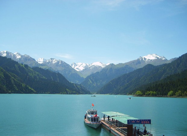 115 km northeast of Urumqi at an elevation of 1980m, the small deep-blue lake is surrounded by hills covered with fir trees and grazed by horses. Scattered around are the yurts of the Kazakh people who inhabit the mountains; nearby are the 5445m-high Bogda Peak and some other snow-covered ones in Tianshan Range.