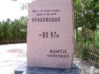 The climate of Turpan Desert Botanical Garden belongs to continental arid desert climate of warm temperate zone while its landform is the improved shifting-sand land in hinterland of Turpan Basin which is the second lowest ground in the world and has been known as the “Wind Pool” and “Flamming Land”. The area is in gale for one to two months each year, with wind levels often exceeding 8 points on the 12 point scale (according to the Beaufort Wind Scale), dramatic temperature fluctuations (from highs of 48 C (118 F) to lows of -28 C (82 F)), and in summer, the surface of the sand reaches temperatures of up to 80 C (176 F).