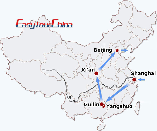 This 11 days China vacation will surely make you delightful and enjoyable: starting from the metropolic city Shanghai, enjoying the unique karst peaks and country side experience in Guilin and Yangshuo, then stunnning at the eighth wonder terracotta worriers and horses...the last stop is Beijing, the capital city of China with grand imperial buildings and modern landmarks, such as Forbidden City, Temple of Heaven, the Great Wall, Ming Tomb, Sacred Road.