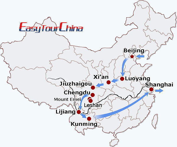 Destinations: Beijing - Luoyang - Xi'an - Jiuzhaigou - Chengdu - Leshan - Emeishan - Lijiang - Kunming - Shanghai