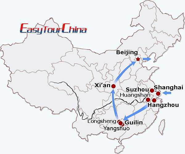 Destinations: Shanghai - Suzhou - Huangshan - Hangzhou - Guilin - Yangshuo - Longji - Xi'an - Beijing