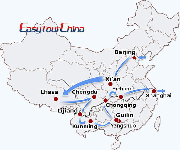 Destinations: Beijing - Xi'an - Lhasa - Chengdu - Lijiang - Kunming - Guilin - Yangshuo - Chongqing - Yangtze River Cruise - Yichang - Shanghai