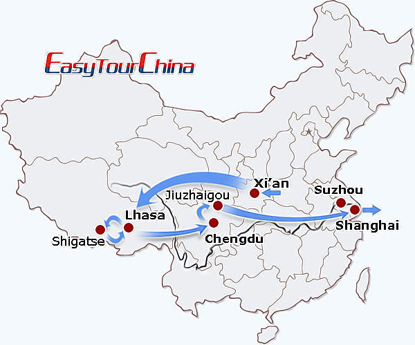 Destinations: Xi'an - Lhasa - Shigatse - Chengdu - Jiuzhaigou - Shanghai - Suzhou - Shanghai