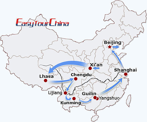 Destinations: Xi'an - Lhasa - Chengdu - Lijiang - Kunming - Guilin - Yangshuo - Shanghai - Beijing