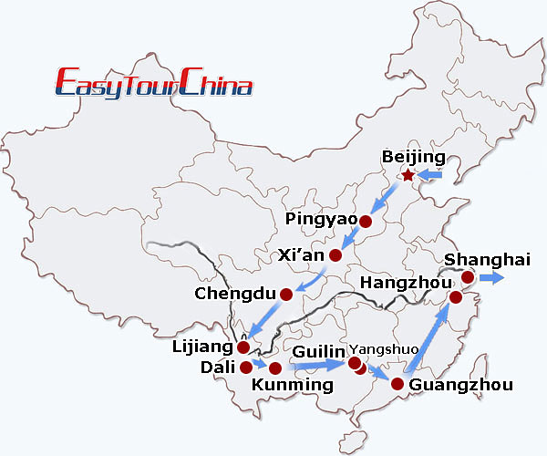 Destinations: Beijing - Pingyao - Xi'an - Chengdu - Lijiang - Dali - Kunming - Guilin - Yangshuo - Guilin - Guangzhou - Hangzhou - Shanghai