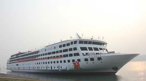 Yangtze Gold 5 Cruise--launched in May 2012 the largest cruise on Yangtze River---New Titanic. Its sailing route is between Chongqing and Yichang. It features at * most spacious cabin: 26.5 square meters * most luxury cruise with swimming pool and Golf Court * 6 sightseeing Elivators *biggest Cruise on Yangtze