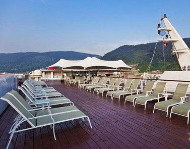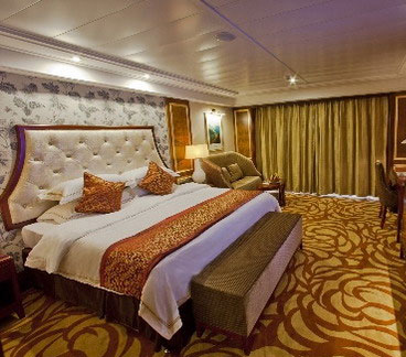 Yangtze Gold 7 Cruise: the most Luxury Cruise on Yantze River: * spacious private balcony: 2.8 square meters * largest cabin: 26.5 square meters * 6 sightseeing elevators * indoor swimming pool * golf court * Heliport